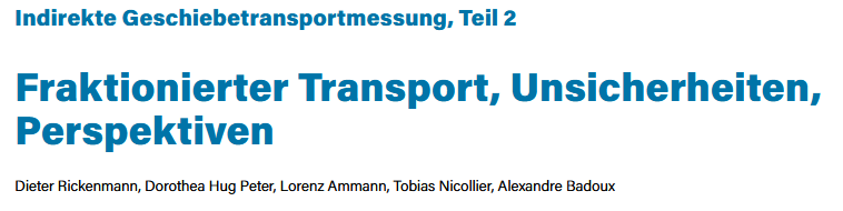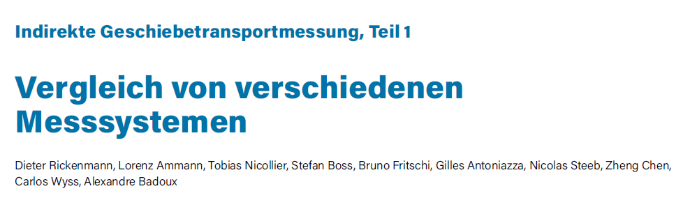 Rickenmann, D., Ammann, L., Nicollier, T., Boss, S., Fritschi, B., Antoniazza, G., Steeb, N., Chen, Z., Wyss, C., Badoux, A. (2024). Indirekte Geschiebetransportmessung, Teil 1: Vergleich von verschiedenen Messsystemen. Wasser, Energie, Luft, 116, 14-22.