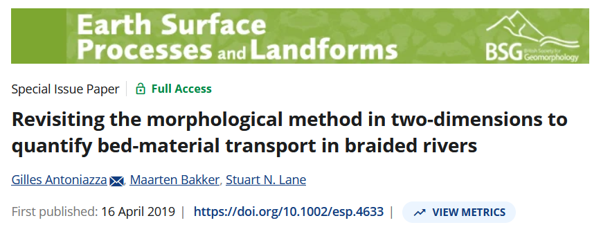 Antoniazza, G., Bakker, M., & Lane, S. N. (2019). Revisiting the morphological method in two‐dimensions to quantify bed‐material transport in braided rivers. Earth Surface Processes and Landforms, 44(11), 2251-2267.
