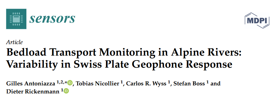Antoniazza, G., Nicollier, T., Wyss, C. R., Boss, S., & Rickenmann, D. (2020). Bedload transport monitoring in alpine rivers: Variability in Swiss plate geophone response. Sensors, 20(15), 4089.