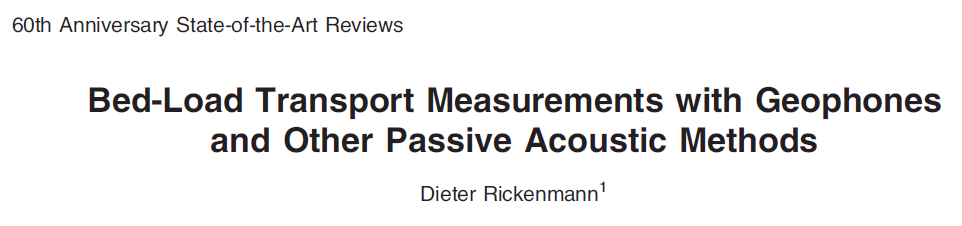 Rickenmann, D. (2017). Bed-load transport measurements with geophones and other passive acoustic methods. Journal of Hydraulic Engineering, 143(6), 03117004.